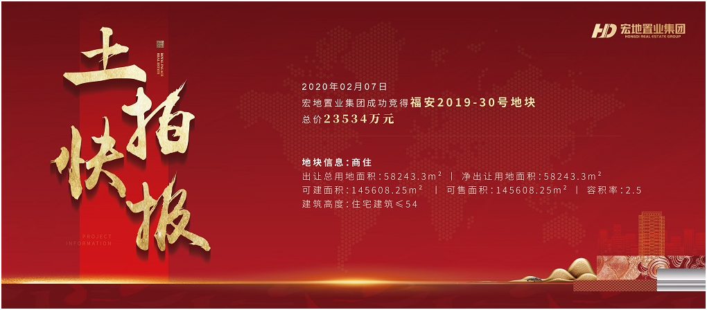 2020年02月07日宏地置业竞得了福建省福安市湖口片区2019-30地块和2019-31地块。